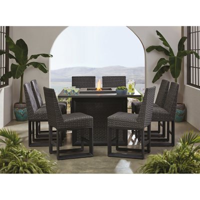Great deal furniture lilith outdoor 5 piece acacia wood club chair and fire pit set, gray finish and gray. An outdoor fire pit is a desirable outdoor option for those who enjoy being outside during all seasons. Member's mark adler 9pc counter height dining set with fire pit sam's club. Wow, good sam club really offers a lot of different membership benefits, more than. Free shipping for plus members.